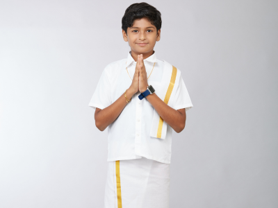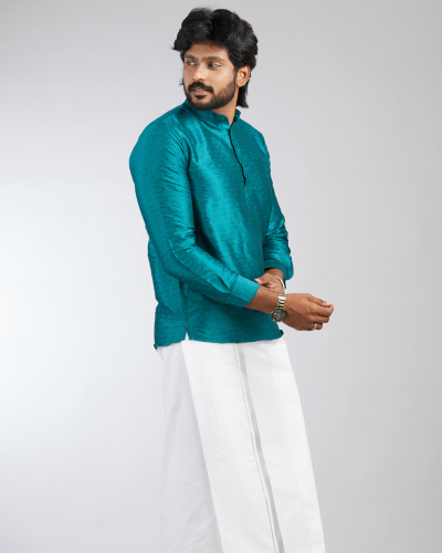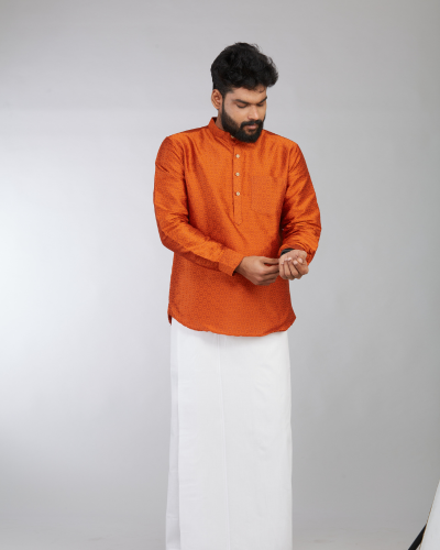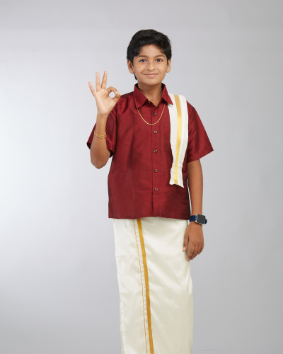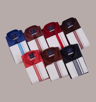 Celebrate the most auspicious day in your life with the most authentic silk dhoties and shirts.
